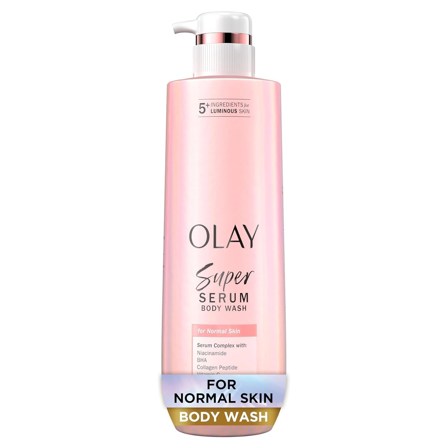Elevate your daily shower with the skin-transforming power of Olay Super Serum Body Wash for Normal Skin. Formulated with a concentrated Serum Complex featuring five potent ingredients—Niacinamide, Vitamin C, Collagen Peptide, Vitamin E, and BHA—this body wash works to reveal visibly luminous and healthy-looking skin. It provides a gentle yet effective cleanse while infusing your skin with the essential nutrients it needs to thrive.